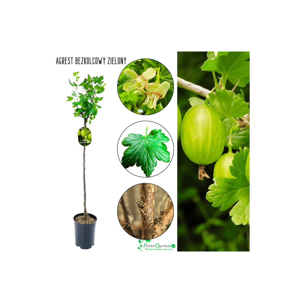 Kup sadzonkę agrestu bezkolcowego zielonego na pniu teraz i ciesz się pięknym ogrodem! Dostawa w 24h.